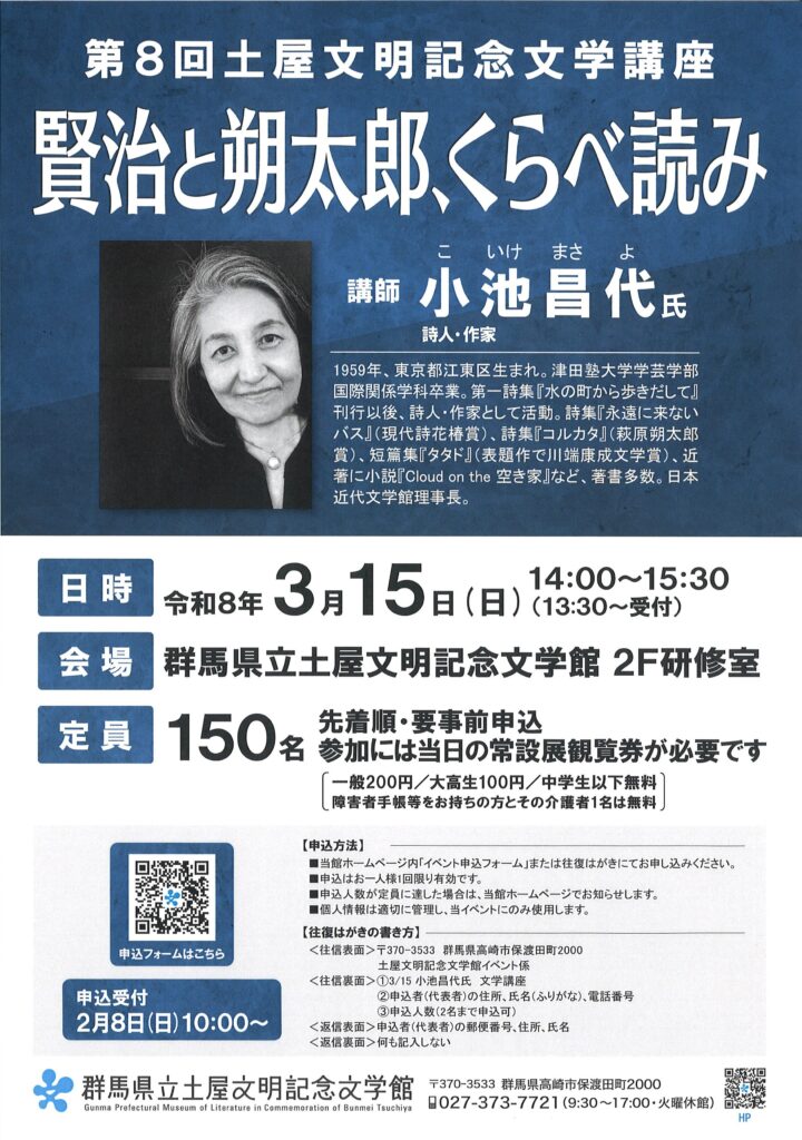 3/15(日) 文学講座「賢治と朔太郎、くらべ読み」(講師:小池 昌代 氏)