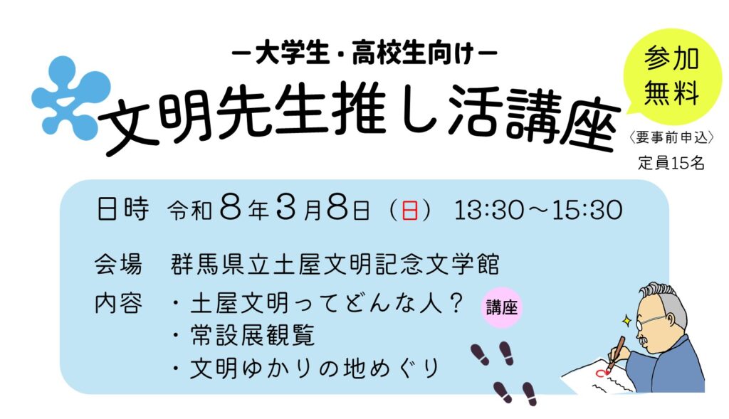 【県内大学生・高校生向け】「文明先生推し活講座」開催 (3/8)